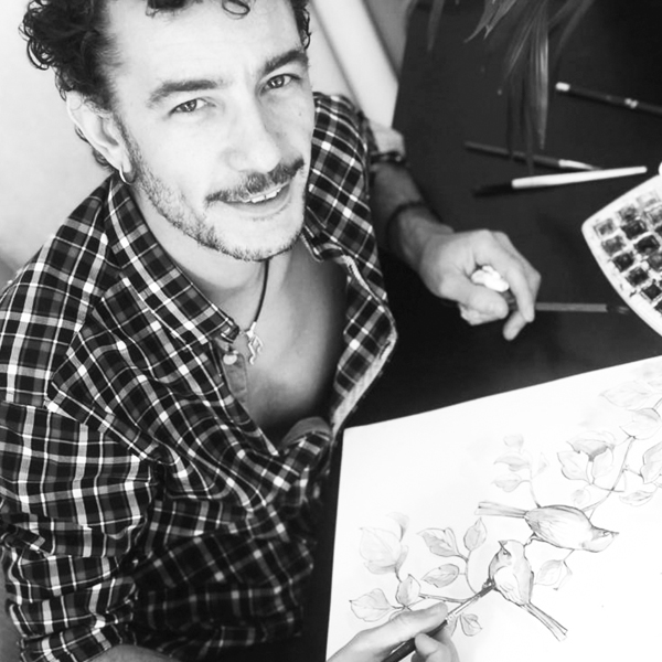 Soy licenciado en Bellas Artes, trabajé durante unos años en publicidad y luego fundé una empresa de pintura mural con mi amiga Valvanera, Garabato Mural. Trabajamos juntos durante quince años, mientras lo combinaba con proyectos de ilustración. Hoy en día continuó pintando murales y también diseñó papeles pintados.
